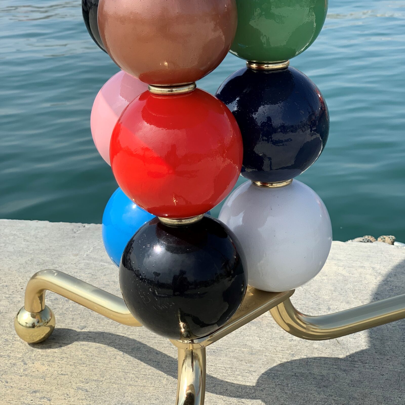 The handcrafted brass and aluminum elements are polished and powder-coated before assembly.